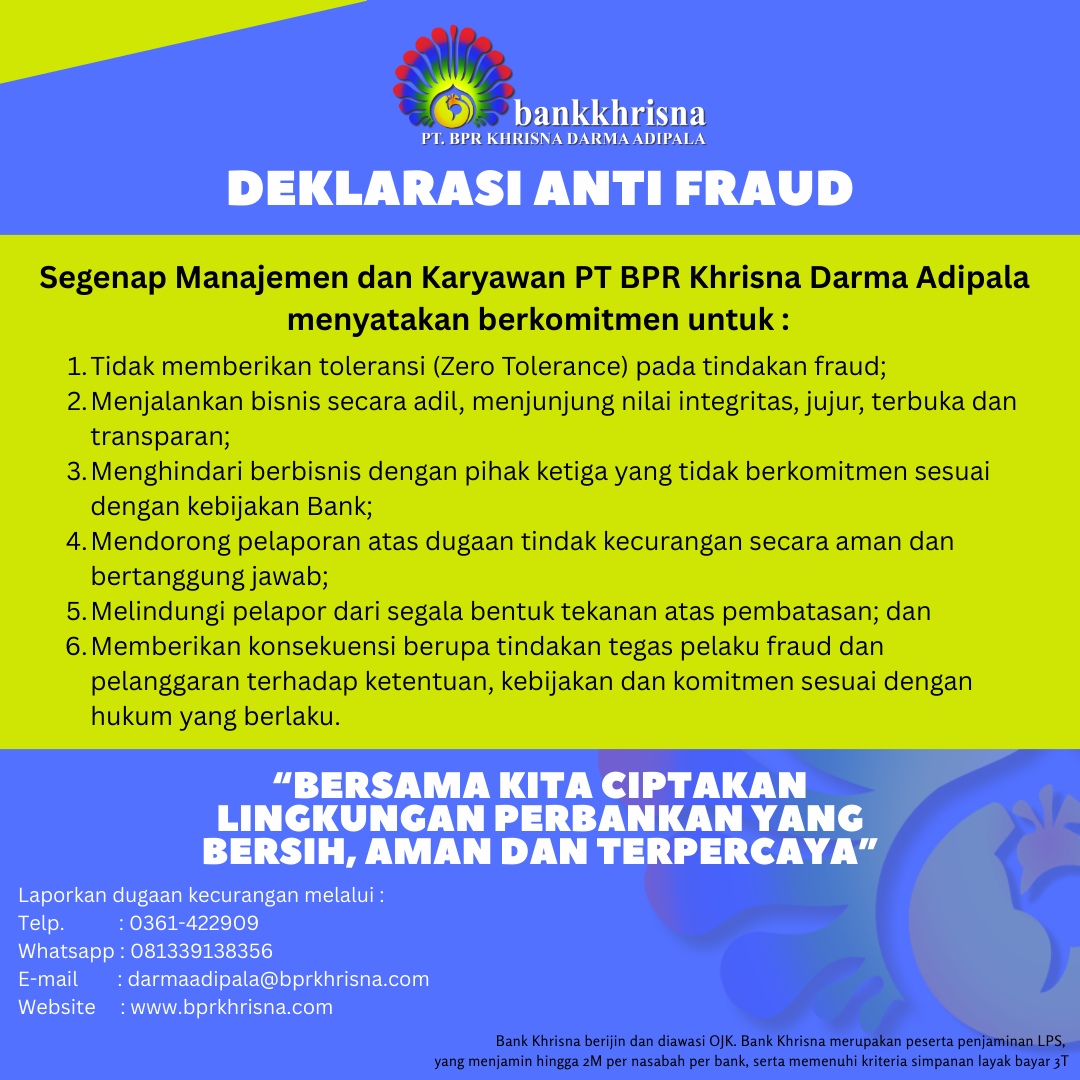 Deklarasi Anti Fraud PT BPR Khrisna Darma Adipala.