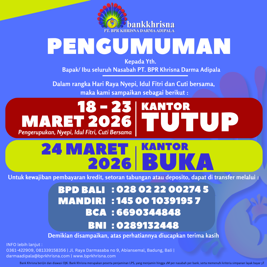 Berikut pengumuman Operasional kantor untuk Libur Hari Raya Nyepi dan Idul Fitri, 18-23 maret 2026